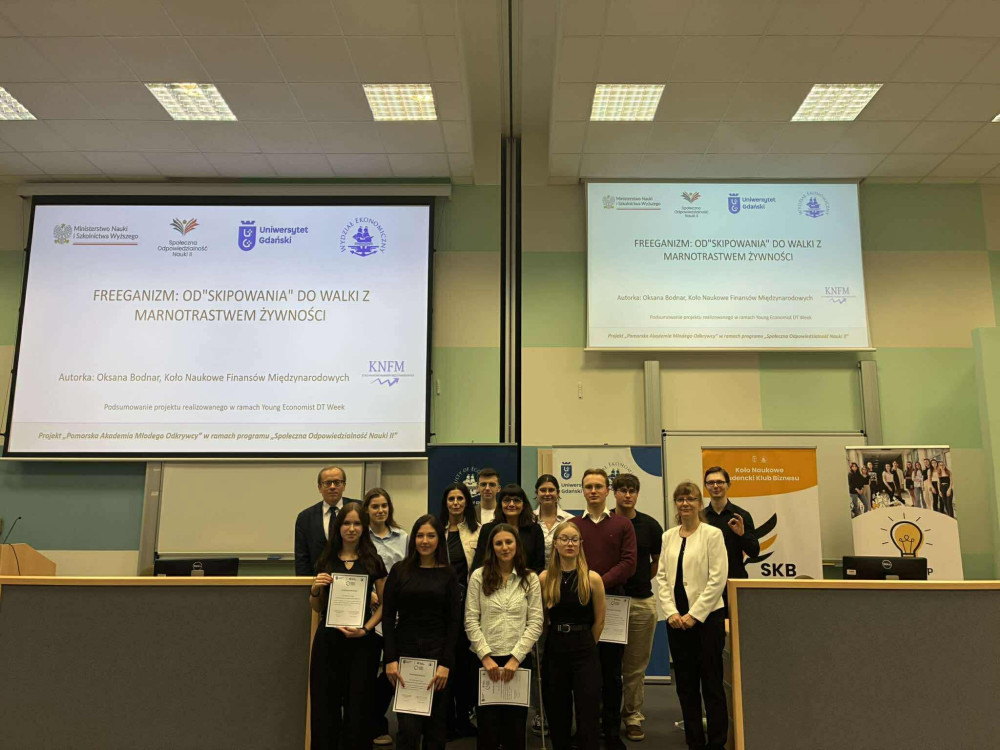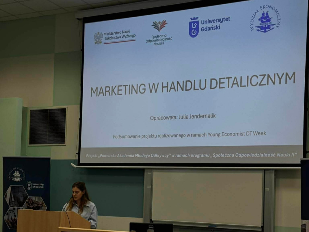 The next part of the event featured presentations from students from two research groups: the International Finance Research Club and the START-UP Entrepreneurship Research Club. They addressed topics related to consumer behavior, sensory marketing, food price analysis, and the impact of discount stores on purchasing choices. There was room for both market analysis and reflection on contemporary trends, such as freeganism and the changing preferences of young consumers towards large retail chains. The presentations presented the results of research conducted as part of a project related to retailer and consumer behavior in the food market in relation to sustainable development. The presentations generated many questions and interesting comments from event attendees.