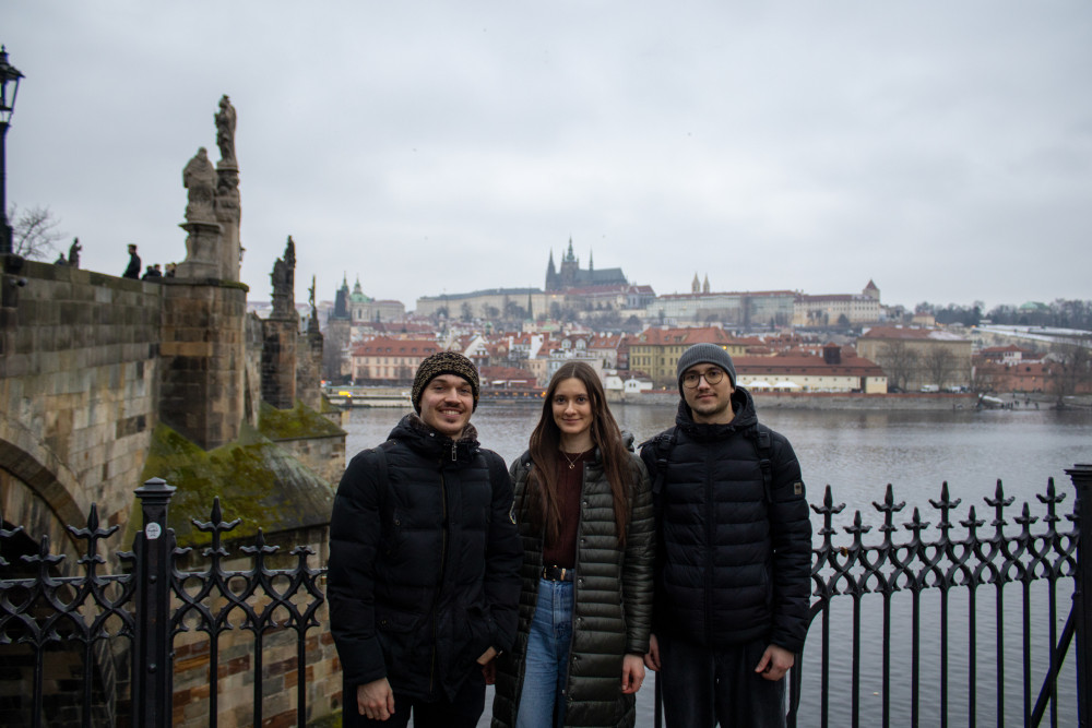 On 2–6 February 2026, a group of students from the University of Gdańsk — Alicja Fedor, Wojciech Fedor, and Bartłomiej Menażyk — representing the Faculty of Economics and the Faculty of Chemistry, participated in the international Erasmus+ Blended Intensive Programme (BIP) entitled “Student Research Week.” The event was hosted by Newton University in Prague.