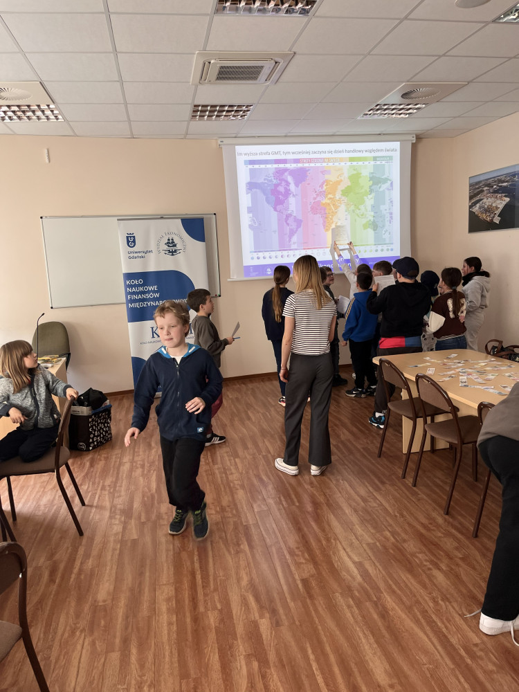 Istotnym elementem wydarzenia były również warsztaty przygotowane przez studentów, które pokazały, jak dużą rolę w działalności Wydziału odgrywa zaangażowanie społeczności akademickiej oraz dzielenie się wiedzą w przystępnej i inspirującej formie. Studentki z Koła Naukowego Finansów Międzynarodowych poprowadziły interesujące zajęcia poświęcone historii pieniądza, wzbogacone konkursem wiedzy o światowych finansach. Uczestnicy mogli nie tylko sprawdzić swoje wiadomości, lecz także zdobyć upominki z logo Uniwersytetu Gdańskiego. Duże zainteresowanie wzbudziła również możliwość zobaczenia, jak wygląda i ile waży 100 000 zł przetworzone w formę brykietu, co stało się dla dzieci atrakcyjnym i zapadającym w pamięć doświadczeniem edukacyjnym.