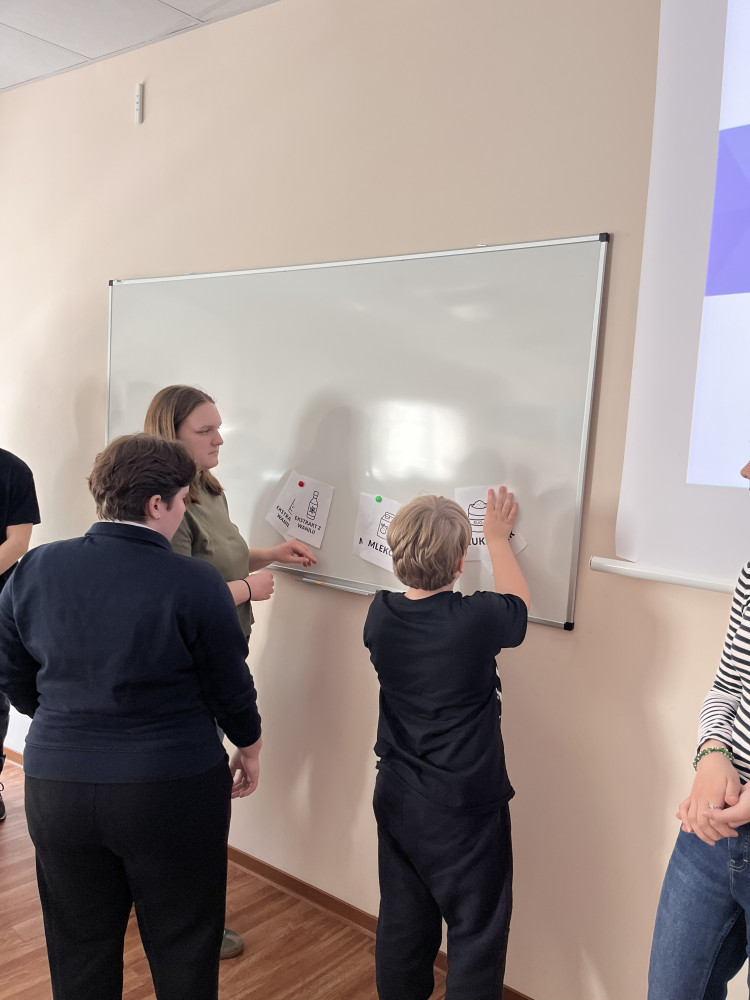 W dalszej części spotkania studenci z Naukowego Koła Logistyki przeprowadzili angażujący warsztat pt. „Co, gdzie, kiedy i za ile? – odkrywanie tajemnic logistyki”. Wykorzystując formułę zabawy oraz przykład procesu produkcji czekolady, przybliżyli uczestnikom podstawowe mechanizmy rządzące logistyką i organizacją procesów gospodarczych.