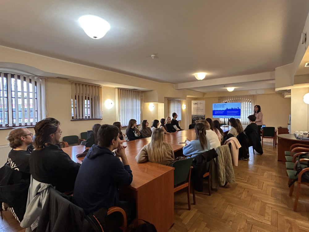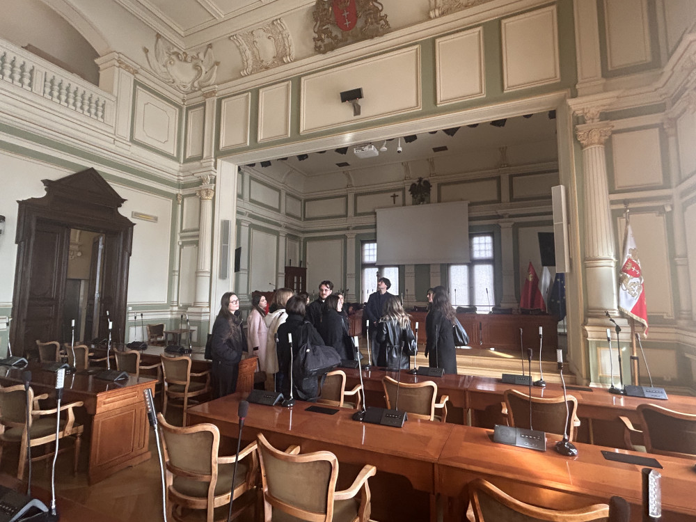 W ramach wykładu "Dyplomacja gospodarcza", prowadzonego przez dr Martę Czarnecką-Gallas, studenci kierunku MSG, specjalności Handel Zagraniczny udali się z wizytą do Związku Miast Bałtyckich (UBC), mającego siedzibę w budynku Nowego Ratusza w Gdańsku. Celem spotkania było ukazanie, czym jest nowoczesna dyplomacja ekonomiczna miast w praktyce i jak podmioty na szczeblu regionalnym i lokalnym mogą ją realizować.Podczas rozmowy z pracownikami organizacji, studenci mogli zapoznać się z misją, głównymi działaniami, projektami oraz strukturą tej zrzeszającej ponad 78 miast, instytucji. Następnie uczestnicy zwiedzili budynek Rady Miasta wraz z Salą Obrad.